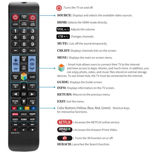 • Compatibility - For all Samsung LED LCD QLED HDTV 4K 3D TVs