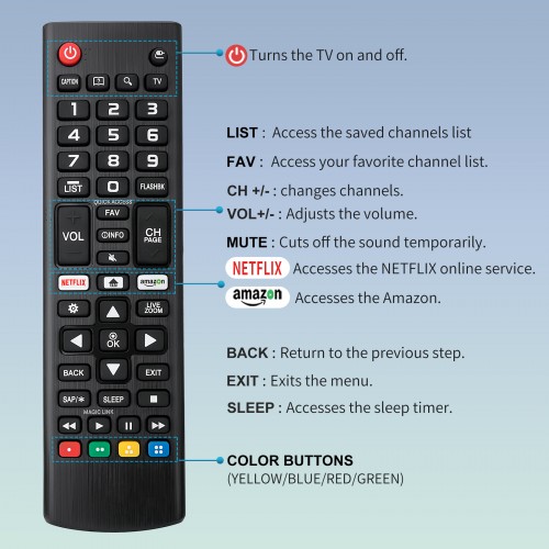 The Loutoc Replacement Remote AKB75095307 is compatible with most LG TVs. The remote does not require additional programming so you can use the remote right out of the box!