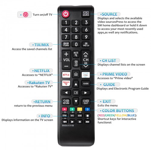 The remote does not require additional programming so you can use the remote right out of the box! Loutoc replacement samsung remote BN59-01315B can be compatible with following types of samsung tvs: